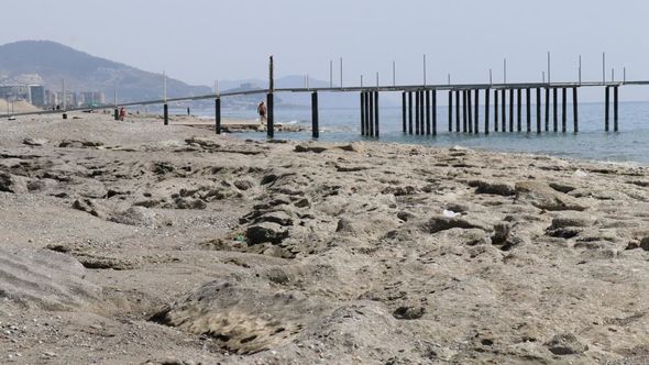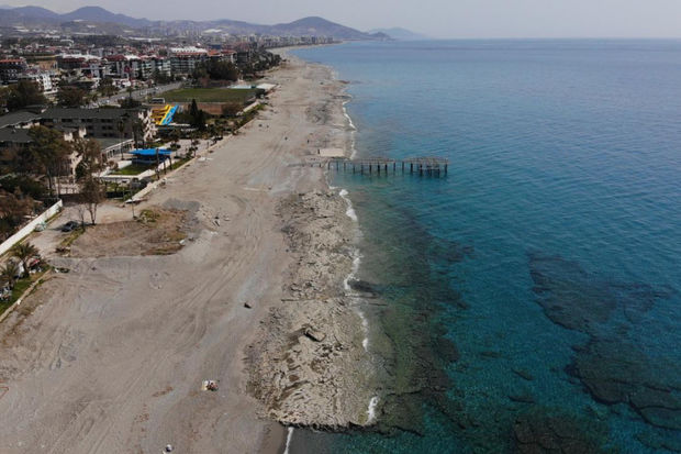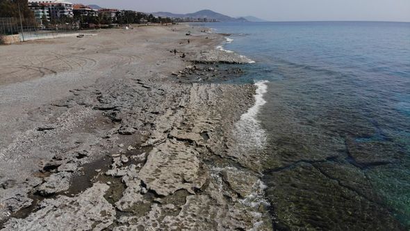 Türkiyənin Alanya şəhərində dənizin səviyyəsinin dəyişməsindən sonra sahildə qayalıqlar görünməyə başlayıb.