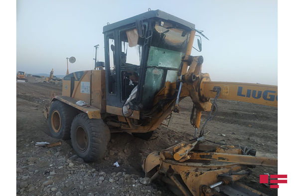 Ağdamda yol inşaatında işləyən tikinti texnikası minaya düşüb.
