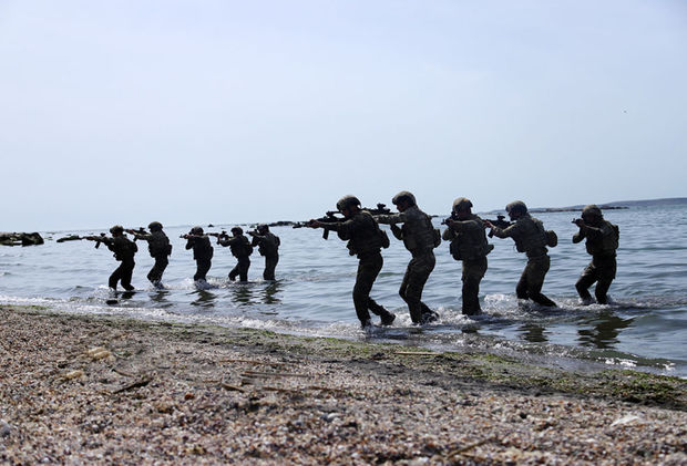 “Efes-2022” çoxmillətli təlimə hazırlıq mərhələsi çərçivəsində hərbi qulluqçularımız dəniz yolu ilə düşmən arxasına sızma, sahil xəttinin minalardan təmizlənməsi, şərti düşmənin sahildə yerləşən hərbi obyektinə basqın və terrorçuların zərərsizləşdirilməsi üzrə fəaliyyətləri icra ediblər.