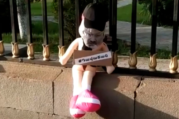 Üzərində “satqın” və “kapitulyant” sözləri yazılmış müqəvvalar həmçinin parlamentin qarşısına da qoyulub.