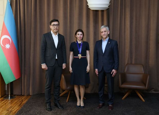 Öz növbəsində, Rəbiyyə Orucova ölkəmizdə idmançılar üçün yaradılmış şəraitə, kütləviliyin diqqət mərkəzində saxlanılmasına görə dövlətimizin başçısı İlham Əliyevə və Birinci vitse-prezident Mehriban Əliyevaya minnətdarlığını bildirib.