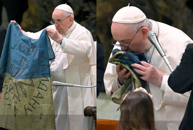 Roma Papası Fransisk Ukraynanın Buça şəhərindəki vəhşiliyi pisləyib və Rusiyanın hərbi təcavüzündən əziyyət çəkən Kiyev vilayətindəki şəhərdən ona göndərilən Ukrayna bayrağını qaldırıb.