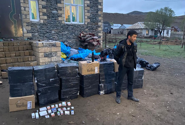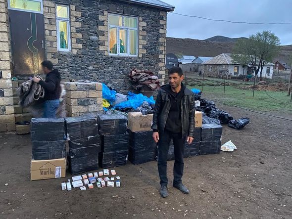 Məhkəmənin qərarı əsasında Yardımlı rayon polis əməkdaşları ilə birgə həmin şəxsin evində keçirilmiş baxış zamanı zirzəmidə 8610 qutu (7910 “Kent” və 700 “Marlboro” markalı) siqaretlər, 1 ədəd gecə görmə cihazı və müxtəlif dərman preparatları aşkar olunaraq götürülüb.