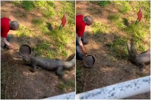 Kadrlarda kişinin timsaha tava ilə bir neçə zərbə endirdiyi, sonra isə vəhşi heyvanın sürətlə sürünərək çaya tərəf getdiyi görünür.