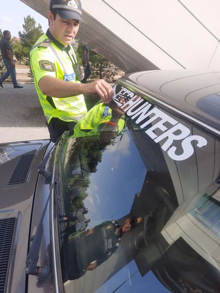 “Paytaxtın Sabunçu rayonu ərazisindəki keçidin yanıdır. Avtomobilin ön şüşəsinin üzərində yazı qeyd edilib. DYP əməkdaşları onun sökülməsi ilə bağlı saxlayıb, lakin tərtib edilən protokol tam fərqli maddə üzrədir”.