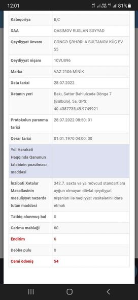 Qeyd edək ki, sürücüyə İnzibati Xətalar Məcəlləsinin 324.7-ci ( Dövlət qeydiyyat nişanları və ya onlardan birinin olmamasına, saxta və ya mövcud standartlara uyğun olmayan və ya başqa nəqliyyat vasitələrinə verilmiş dövlət qeydiyyat nişanları ilə nəqliyyat vasitələrini idarə etməyə görə) maddəsi ilə protokol tərtib edilib.