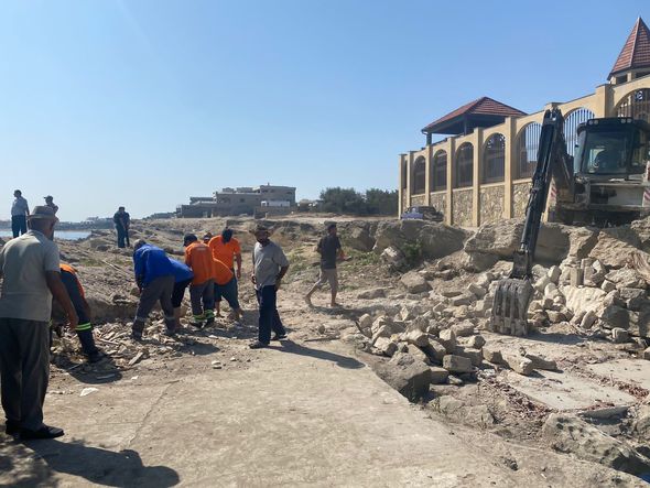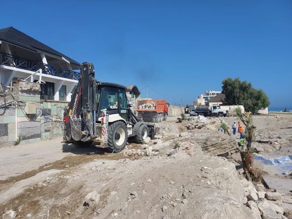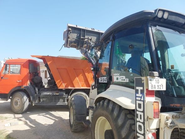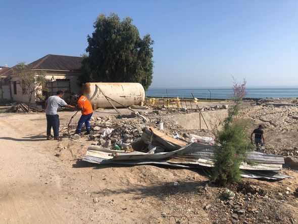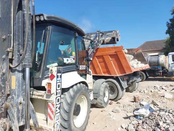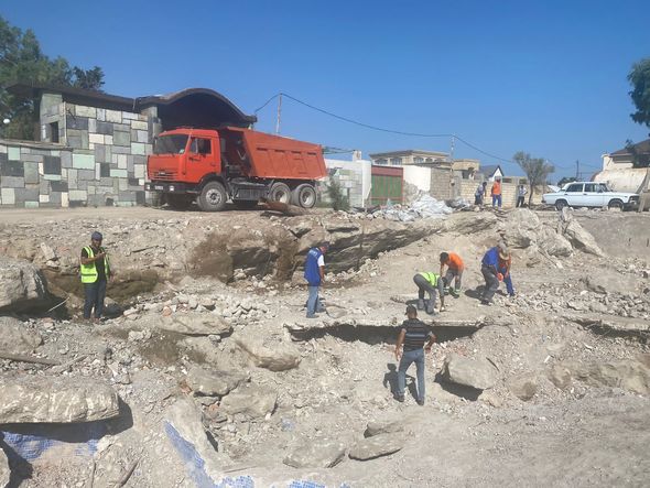 Ərazidə texnikanın dağıtdığı tikintilərin qalıqlarını şəhər və rayonun Mənzil Kommunal Təsərrüfat Birliyinin əməkdaşları təmizləyirlər.
