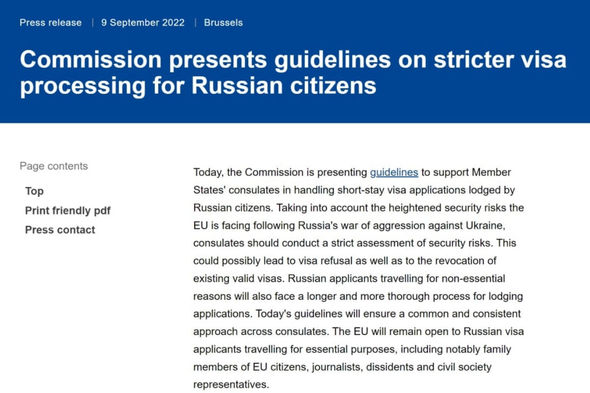 Avropa Komissiyası rusiyalılara viza verilməsi ilə bağlı yeni tövsiyələr dərc edib.