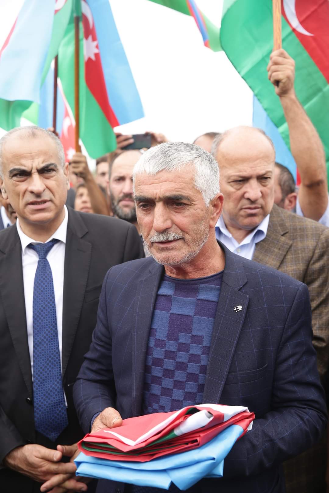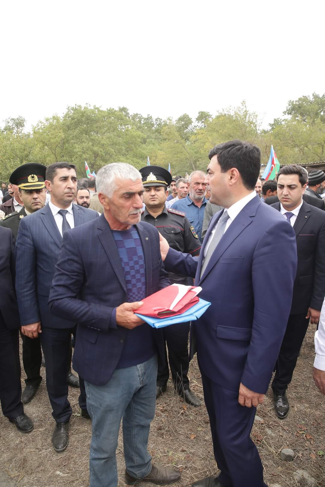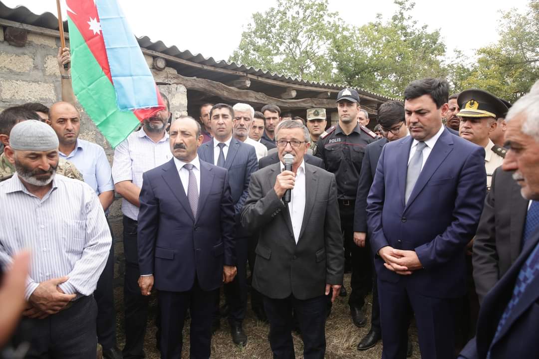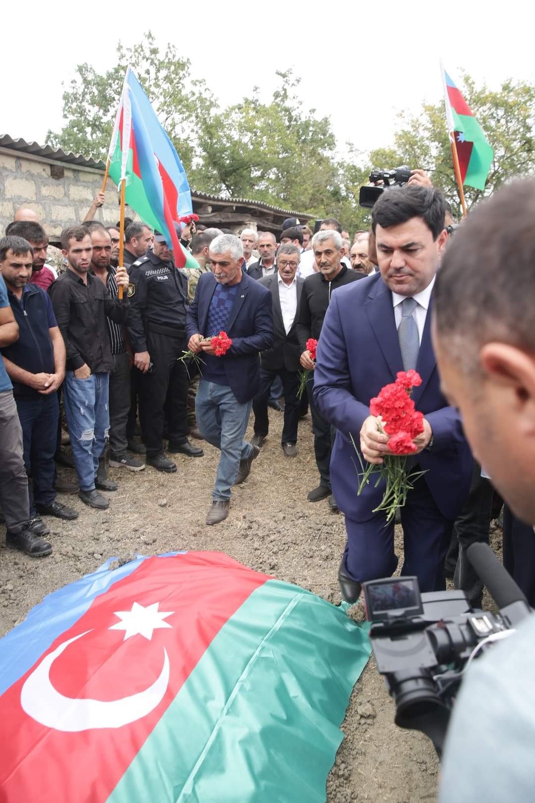 Şəhidin tabutu üzərindəki üç rəngli Azərbaycan bayrağı onun atasına təqdim olunub, havaya yaylım atəşi açılıb.