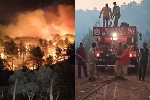 Türkiyənin kurort şəhəri Muğlanın Ula mahalında güclü meşə yanğını baş verib.