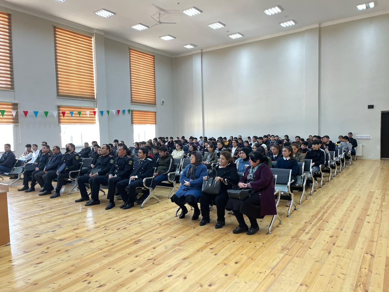 Tədbirdə çıxış edən RPŞ-nin rəisi vəzifəsini müvəqqəti icra edən polis mayoru Fərid Fətəliyev müasir dövrdə narkomaniyanın insanlıq əleyhinə böyük bəlaya çevrildiyini qeyd edərək onun fəsadlarından, ağır nəticələrindən danışıb, səbəb olduğu faciələrdən real faktlara istinad edib. Qeyd olunub ki, “ağ ölüm”lə mübarizədə ümumilikdə cəmiyyət barışmaz mövqe tutmalı, xüsusən gənclərimizə onun zərərləri barədə daha çox məlumat verilməlidir ki, fəsadları barədə məlumatlı olsunlar. Ölkəmizdə hüquq-mühafizə orqanları tərəfindən narkomaniyaya qarşı ciddi tədbirlərin görüldüyünü, narkotik vasitələrin qanunsuz dövriyyəsi ilə məşğul olan şəxslərin müəyyən edilərək məsuliyyətə cəlb olunmaları istiqamətində uğurlu tədbirlərin həyata keçirildiyini diqqətə çatdıran F.Fətəliyev gənclərə bu bəladan hər zaman uzaq olmalarını tövsiyə edərək milli-mənəvi dəyərlərimizə sadiq olmalarını, təhsilə, sağlam həyat tərzinə maraq göstərmələrini, uğurlu gələcəklərini qurmaq üçün müasir elmi bilikləri, informasiya texnologiyaları ilə işləməyi öyrənmələrini tövsiyə edib.