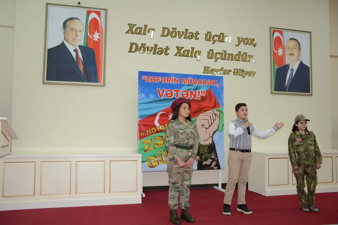 Məktəblilər vətənə, şəhidlərə aid şeirlər söyləyiblər.