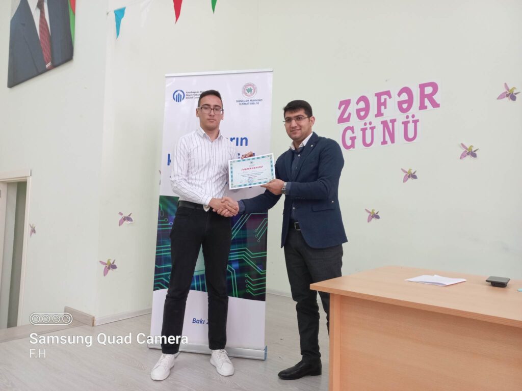 Tədbirdə layihə çərçivəsində nəşr olunan “Uşaqların kiber mühitdə təhlükəsizliyi” adlı kitabça iştirakçılara paylanıldı. Sonda şagirdlərə və gənc müəllimlərə göstərdiyi xidmətlərə, diqqət və qayğıya görə Kəlbəcər rayonu 17 nömrəli tam orta məktəbin direktoru Hüseynova Esmira “Gənclərin Dostu” fəxri mükafatı, tədbirin fəal iştirakçılarına isə təşəkkürnamə təqdim edildi.