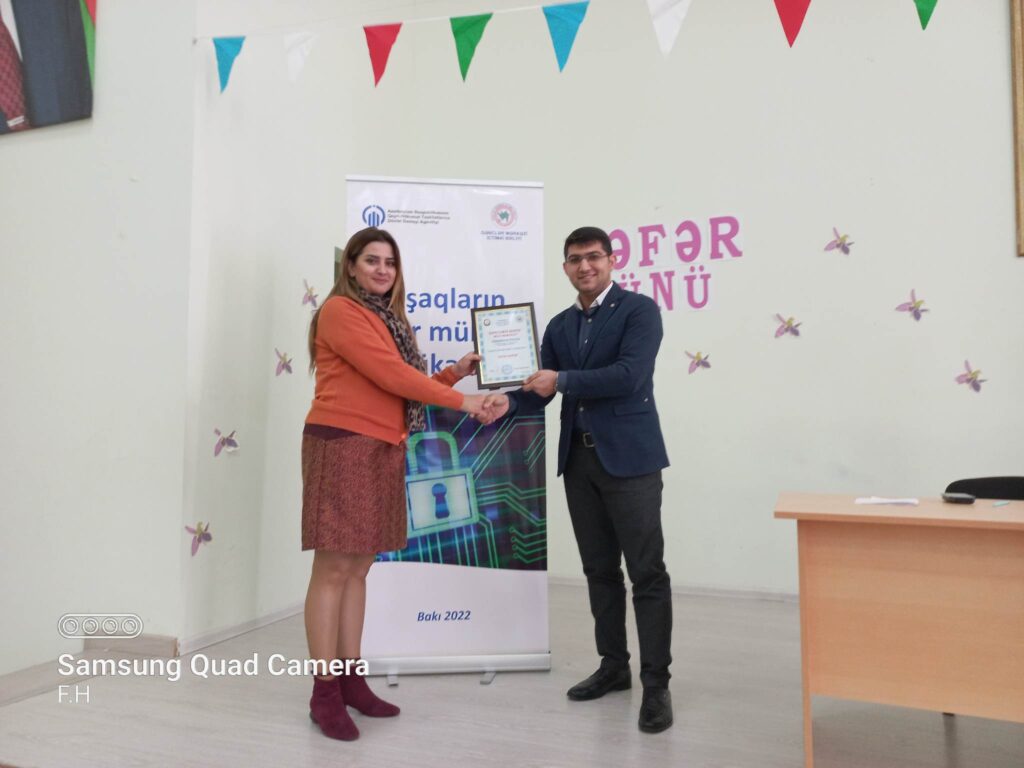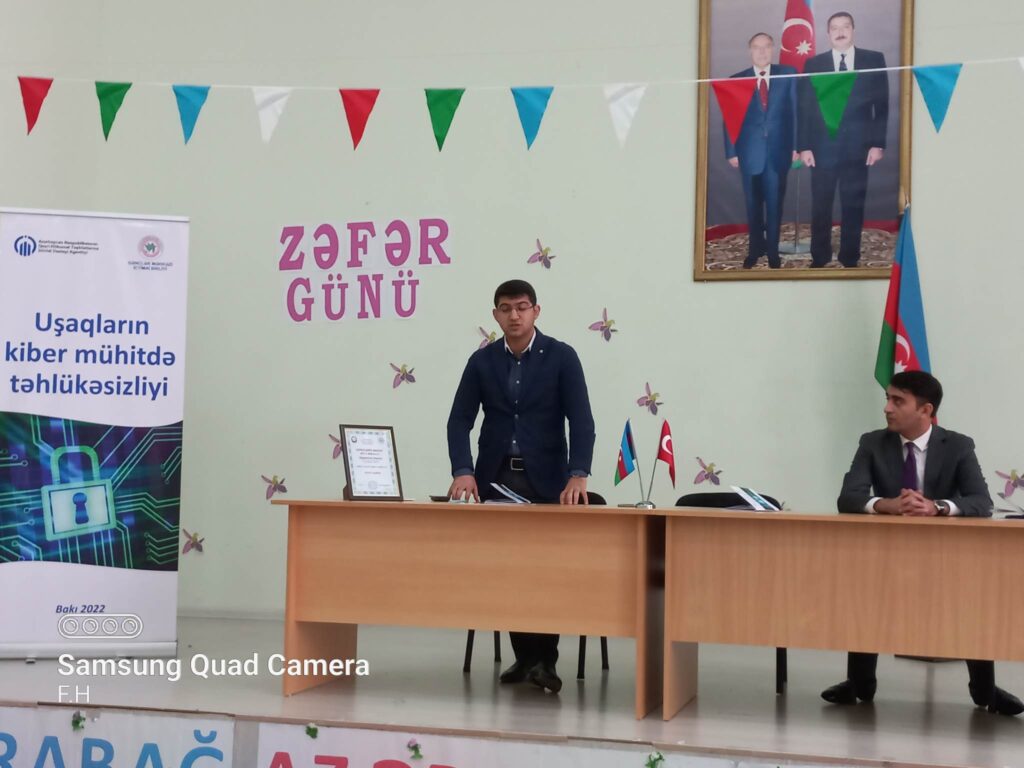 Tədbirdə layihənin eksperti Anar Sarıyev çıxış edərək uşaqların, gənclərin kiber mühitdə təhlükəsizliyi, zərərli informasiyalardan qorunmağın yolları barədə geniş məlumat verdi.