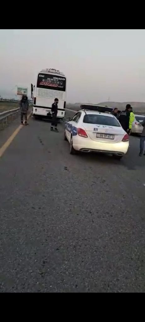 Bildiririk ki, “Mercedes Benz” markalı 90-BL-403 dövlət nömrə nişanlı sərnişin avtobusu Bakı istiqamətinə hərəkət edərkən köməkçi yoldan əsas yola çıxan 10-ZH-449 dövlət nömrə nişanlı yük avtomobili ilə toqquşub. Hadisə nəticəsində bir nəfər sərnişin yüngül xəsarət alıb. Ölən və ağır xəsarət alan olmayıb. Faktla bağlı araşdırma aparılır.