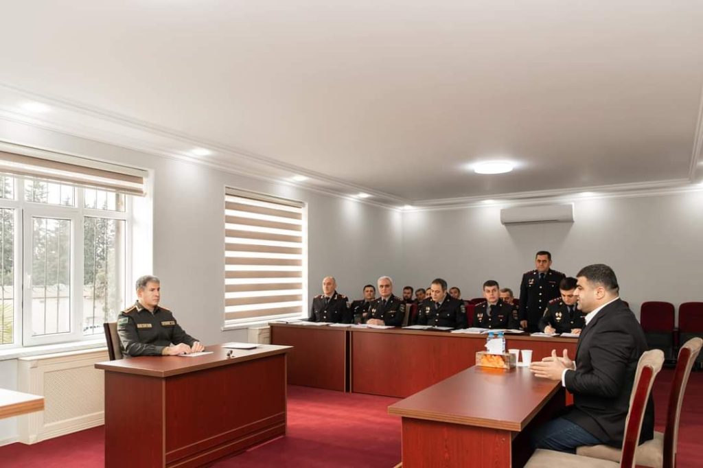 Səfər çərçivəsində general-polkovnik V.Eyvazov bölgə üzrə polis orqanlarında sıravi və kiçik rəis heyətinə xidmətə qəbulla bağlı sıra baxışı keçirib.