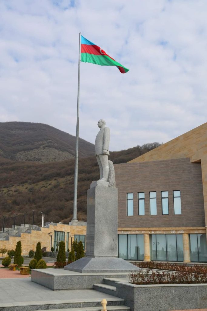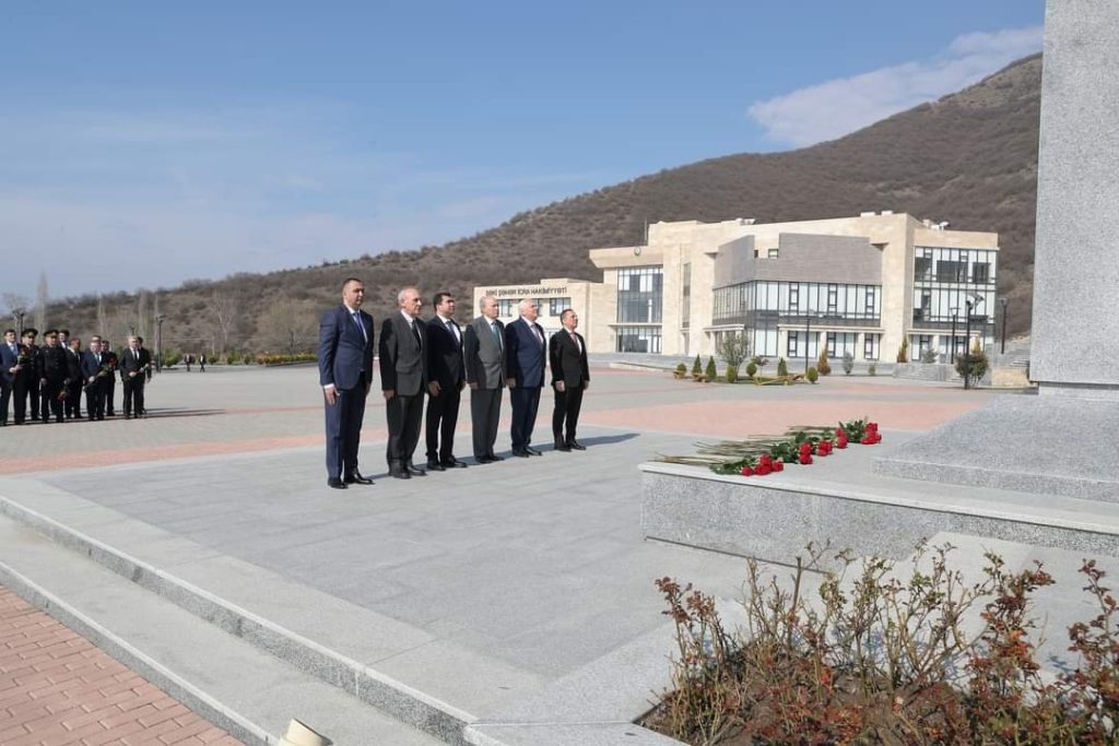 Öncə qonaqlar Şəki şəhərinin mərkəzində Ümummilli Lider Heydər Əliyevin xatirəsinə ucaldılmış abidəni ziyarət etmiş, önünə gül dəstələri qoymuşlar.