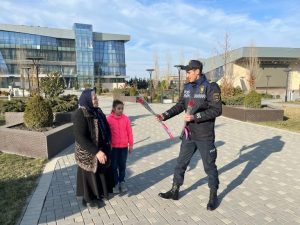 Tədbir zamanı parkda dincələ xanımlar da diqqətdən kənarda qalmayıblar. Polis əməkdaşları onları da bayram münasibətilə çiçək və müxtəlif hədiyyələrlə təbrik ediblər.