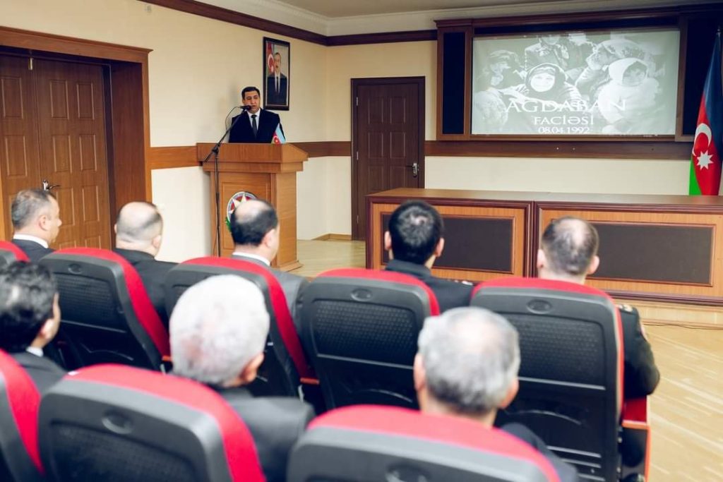 Əvvəlcə Ümumilli lider Heydər Əliyevin və torpaqlarımızın ərazi bütövlüyü uğrunda Şəhid olan, vətən övladlarının, faciə qurbanlarının əziz xatirəsi bir dəqiqəlik sükutla yad edilib, ruhlarına ehtiramlarını bildiriblər. Daha sonra Ağdaban faicəsindən bəhs edən film nümayiş etdirilib.