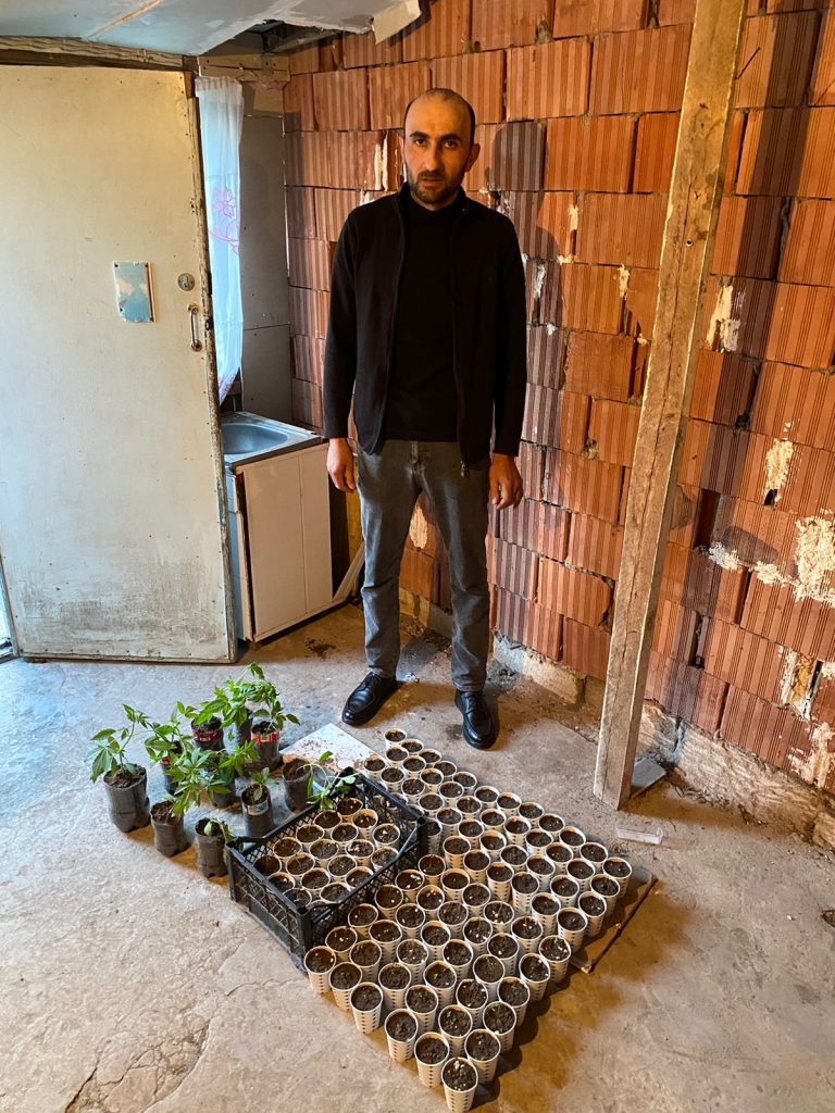 Onun yaşadığı ünvana keçirilən baxış zamanı xüsusi aqrotexniki qaydada qulluq edilərək yetişdirilən 114 ədəd çətənə kolu və şitili aşkar edilərək götürülüb.
