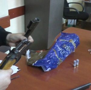 Baş İdarənin Narkotiklərlə Mübarizə Bölməsinin əməkdaşlarının keçirdikləri əməliyyat-tədbirləri nəticəsində isə qanunsuz olaraq odlu silah əldə edib saxlamaqda şübhəli bilinən Elçin Əliyev saxlanılıb. Şəhər ərazisində saxlanılaraq Baş Polis İdarəsinə gətirilən E. Əliyevin üzərinə baxış keçirilən zaman əlindəki sellofan torbadan 2 ədəd lüləsi və qundağı kəsilmiş müxtəlif markalı ov tüfəngi həmçinin 2 ədəd patron aşkar olunaraq götürülüb.