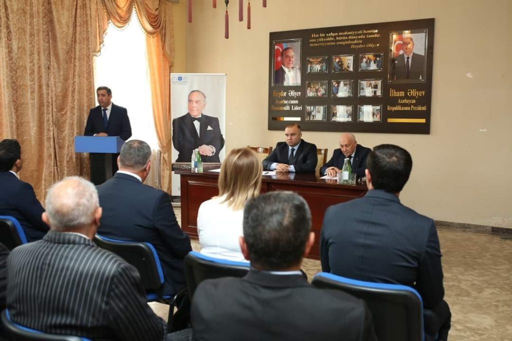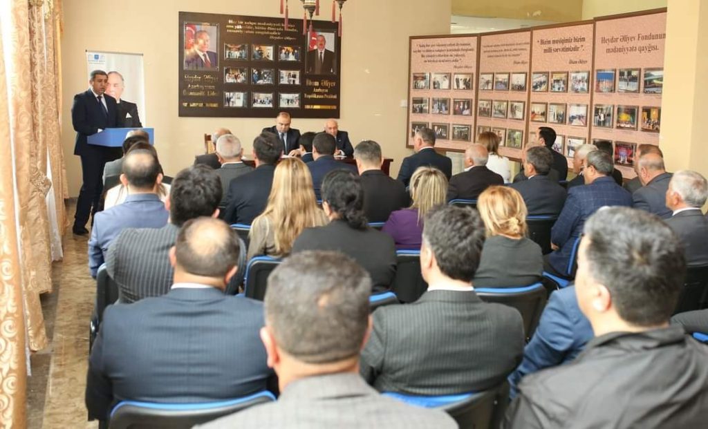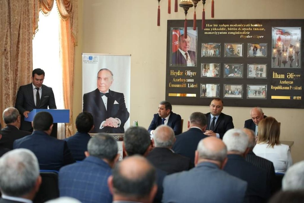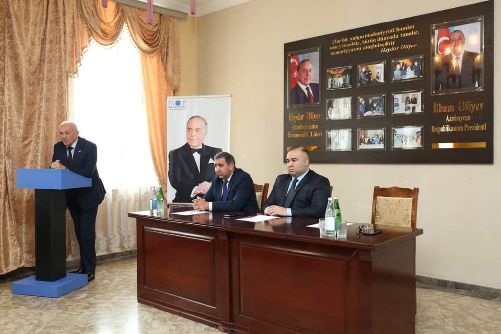 Tədbirdə çıxış edən Rayon İcra Hakimiyyətinin başçısı Azər Qocayev Ümumilli liderin xalqımız və vətənimiz qarşısındakı misilsiz xidmətlərindən söz açıb.Bildirib ki, məhz Ulu Öndər Heydər Əliyev xalqın ən çətin dövründə xilaskarlıq missiyasını üzərinə götürərək xalqını və dövlətini bəllalardan qutarmış, ictimai-siyasi sabitliyi bərpa etmiş, güclü iqtisadi dayaqlar yaratmış, ölkənin hərtətəfli inkişafına nail olmuşdur.Rayon rəhbəri xalqın xilaskar oğlunun Azərbaycan tarixindəki və beynəlxalq arenadakı rolundan, o cümlədən demokratik, hüquqi dövlət quruculuğunda, ölkəmizin qüdrətlənməsində, inkişafındakı misilsiz əmək sərf etməsindən, xalqın rifahının yüksəldilməsində əvəzsiz xidmətlərindən, dünya siyasətinə və onun siyasi idealogiyasının bu gündə ölkəmizin inkişafına verdiyi töhfələrdən danışıb.