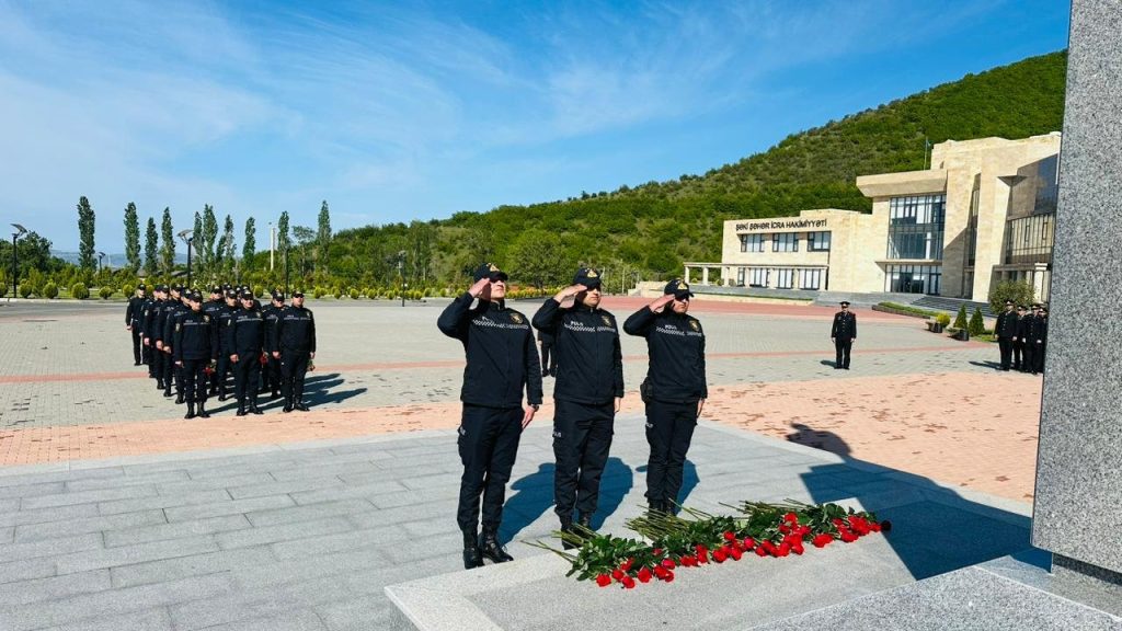 Sonra Polis Şöbəsinin inzibati binasında davam etdirilən tədbirdə əvvəlcə dahi şəxsiyyət Heydər Əliyevin, Azərbaycanın suverenliyi və ərazi bütövlüyü uğrunda canlarını fəda etmiş şəhidlərimizin əziz xatirəsi bir dəqiqəlik sükutla yad edilib, daha sonra Dövlət Himni səsləndirilib.