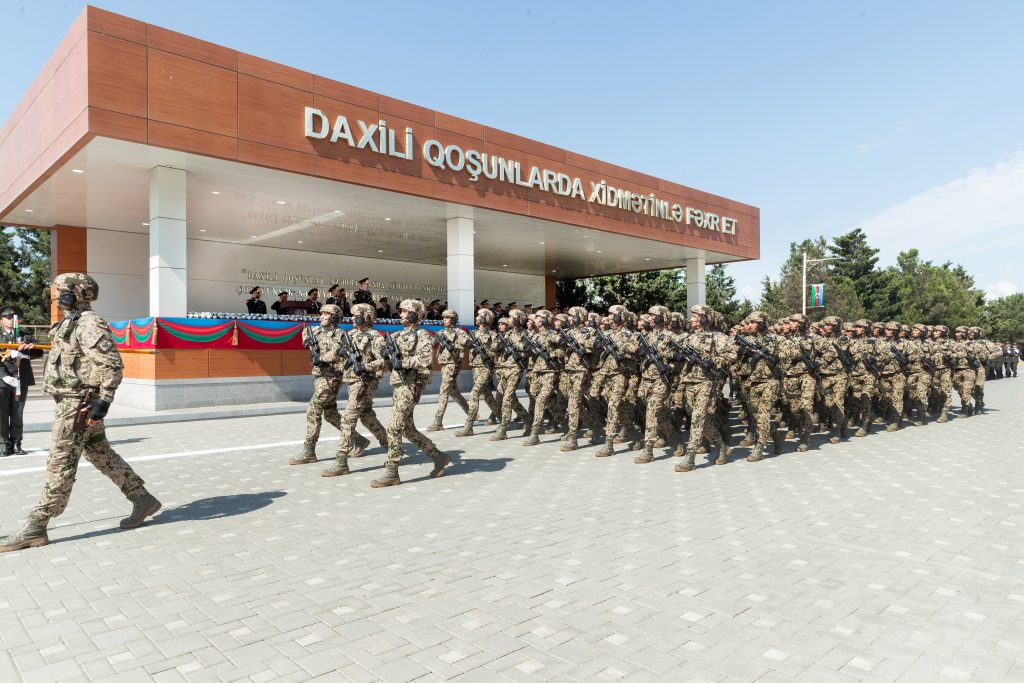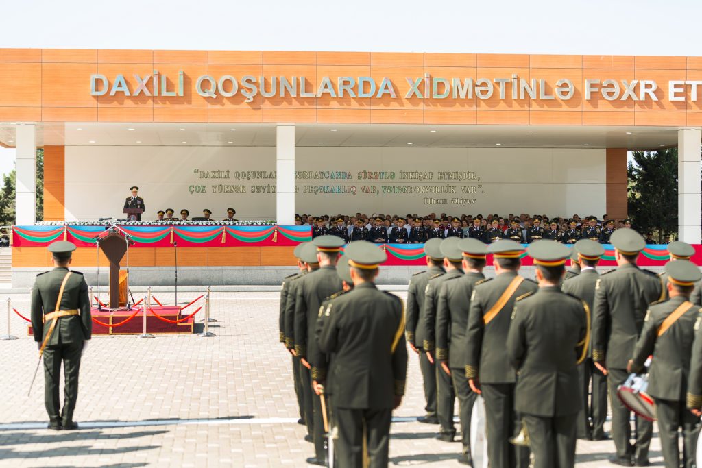 Gənc zabitlər önündə çıxış edən nazir Vilayət Eyvazov məmnunluqla bildirib ki, Azərbaycan Respublikasının Prezidenti, Silahlı Qüvvələrin Ali Baş Komandanı cənab İlham Əliyev Qoşunların döyüş hazırlığının yüksəldilməsini daim nəzarətdə saxlayıb, müasir silah və texnika ilə təminatı, şəxsi heyətinin sosial müdafiəsinin gücləndirilməsi sahəsində bir çox vacib qərarlar qəbul edib. Məhz bu ali diqqətin nəticəsidir ki, Daxili Qoşunlar qarşıya qoyulan xidməti-döyüş tapşırıqlarını yüksək səviyyədə yerinə yetirməyə qadir silahlı birləşməyə çevrilib.