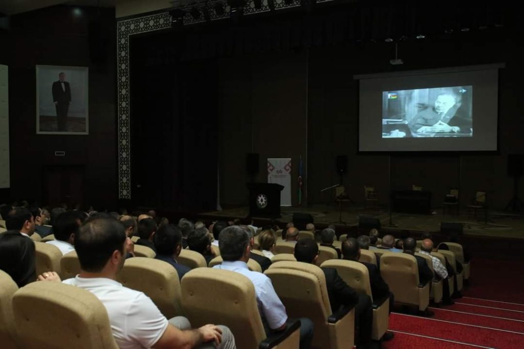Tədbirdə müasir Azərbaycan dövlətinin banisi Heydər Əliyevin keçdiyi şərəfli həyat yolundan və dövlətçiliyimizin qüdrətlənməsində misilsiz xidmətlərindən bəhs edən sənədli film nümayiş etdirilib.