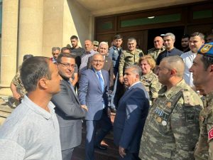 Müharibə veteranları və qaziləri qarşıdan gələn Qurban bayramı münasibətilə təbrik edən Rayon İcra Hakimiyyəti başçısı Vuqar Zeynalov çıxış edərək Ümummilli Lideri Heydər Əliyevin öz xalqının tarixində müstəsna rola malik və ən mürəkkəb şəraitdə xalqının xilaskarlıq missiyasını üzərinə götürmüş bənzərsiz dövlət xadimi olduğunu vurğulamış, məhz Ulu Öndər tərəfindən əsası qoyulmuş Azərbaycan Ordusunun dünyanın ən güclü orduları sırasında yer aldığını və Vətən müharibəsində Azərbaycan Respublikasının Prezidenti cənab İlham Əliyevin Müzəffər Ali Baş Komandanlığı ilə qazandığı Şanlı Qələbənin təkcə Azərbaycan tarixində deyil, dünya hərb elminin tarixində də mühüm izlər qoyduğunu bildirmişdir. Ölkəmizin ərazi bütövlüyü uğrunda öz canından keçmiş şəhidlərin ailələrinə, həmçinin müharibə əlilləri və qazilərə dövlət tərəfindən hər zaman böyük diqqət və qayğı göstərildiyi diqqətə çatdıran RİH başçısı Vuqar Zeynalov Müzəffər Ali Baş Komandan İlham Əliyev və Birinci vitse-prezident xanım Mehriban Əliyevanın tapşırıq və göstərişləri ilə Vətən müharibəsində şəhidlik zirvəsinə ucalan igidlərimizin ailə üzvlərinin, bu haqq savaşımızda şanlı Zəfər qazanan qüdrətli Azərbaycan Ordusunun hərbçilərinin və müharibə veteranlarının sosial müdafiəsinin möhkəmləndirilməsi istiqamətində həyata keçirilən kompleks tədbirlərin bunun bariz nümunəsi olduğunu qeyd etmişdir.