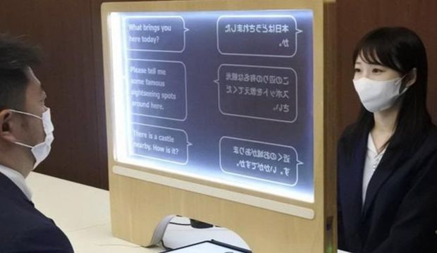 Məlumata görə, Tokiodakı dəmiryolu stansiyasındakı bilet kassasında xarici turistin başqa dildə danışdığı mətni əks etdirən kiçik ekran quraşdırılıb.