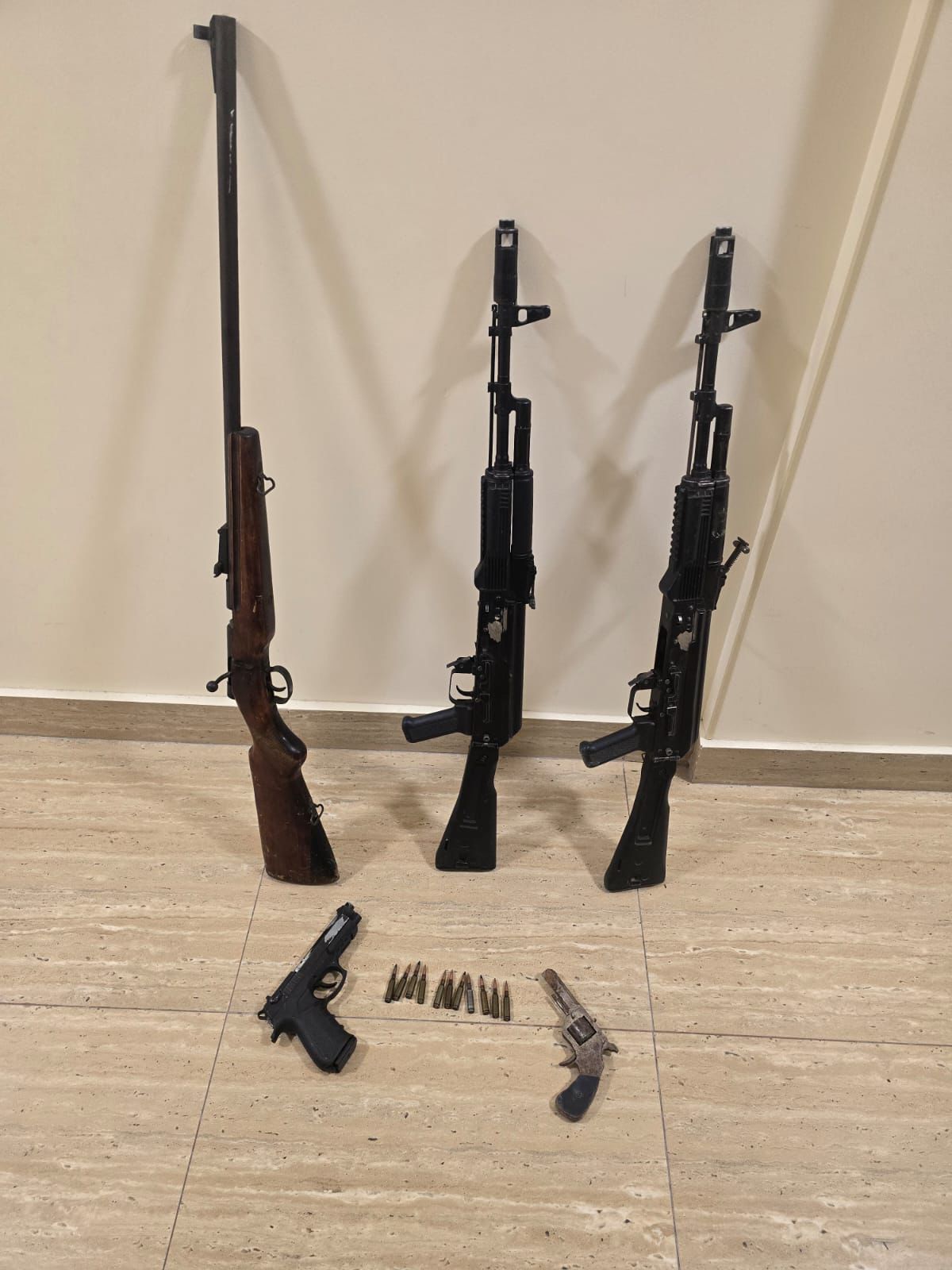 Abşeron Rayon Polis İdarəsinin Saray Polis Bölməsinin əməkdaşlarının daxil olmuş əməliyyat məlumatı əsasında Novxanı qəsəbəsində həyata keçirdikləri tədbir nəticəsində üzərində qanunsuz olaraq odlu silah-sursat gəzdirən şəxs saxlanılıb. Bölməyə əvvəllər dəfələrlə məhkum olunmuş Abşeron rayon sakini Emin Əliyevdə silah olması barədə əməliyyat məlumatı daxil olub. Həmin şəxs saxlanılıb və onun üzərinə baxış zamanı 1 ədəd “Makarov” markalı tapança, 5 ədəd patron və sandıqça aşkar edilərək götürülüb. Emin Əliyev odlu silah-sursatı bir neçə ay bundan əvvəl əldə etdiyini, lakin polisə təhvil verməyərək satmaq məqsədi ilə özündə saxladığını bildirib.