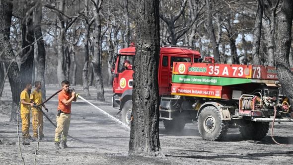 Onun sözlərinə görə Ödəmiş və Kınık rayonlarında başlayan meşə yanğınlarının tam söndürülməsi üçün işlər davam edir.