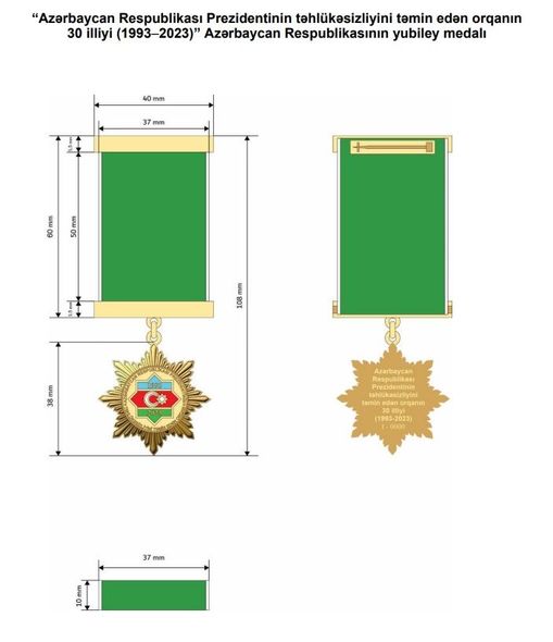 Beləliklə, dəyişikliklə Azərbaycan Respublikası Minatəmizləmə Agentliyinin 25 illiyi (1998-2023)”, Azərbaycan Respublikası Prezidentinin təhlükəsizliyini təmin edən orqanın 30 illiyi (1993-2023)”, Azərbaycan Respublikasının strateji obyektlərin mühafizəsi orqanlarının 30 illiyi (1993-2023)” və “Azərbaycan Respublikasının xüsusi rabitə və informasiya təhlükəsizliyi orqanlarının 30 illiyi (1993-2023)” ilə əlaqədar yubiley medalları təsis edilib.