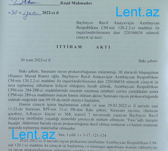 Lent.az qətl hadisəsinin istintaq materiallarını əldə edib.