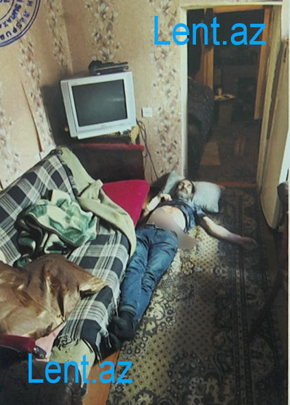 Evə baxış zamanı döşəmə üzərində, arxası üstə uzanıqlı vəziyyətdə Gəncə şəhər sakini 1972-ci il təvəllüdlü Fəxrəddin Əsədov meyiti, həmçinin cinayətin aləti olan bıçaq aşkar edilib.