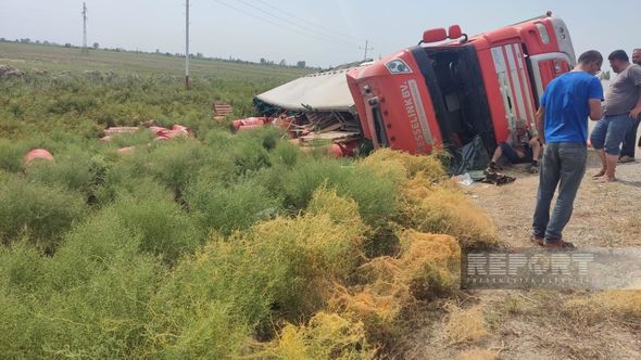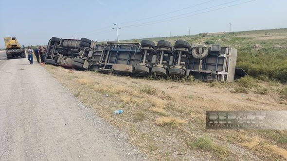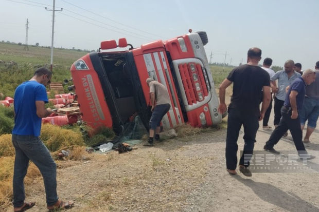 Kürdəmir rayonunda yük daşıyan TIR aşıb.