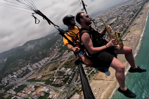 Türkiyənin Antalya şəhərinin Alanya rayonunda Ahmet Kuram adlı 25 yaşlı musiqiçi yamac paraşütündə uçuş zamanı musiqi alətində ifa edib.