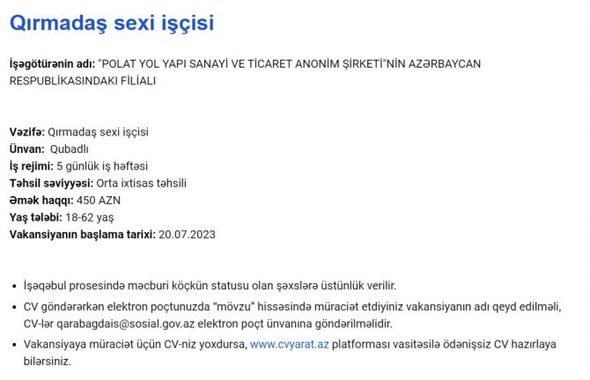 Qarabağ üzrə Dövlət Məşğulluq Mərkəzlərində işsiz və iş axtaranlara təklif olunan müxtəlif məvacibli işlərin siyahısı vətəndaşlarda böyük maraq doğurur.