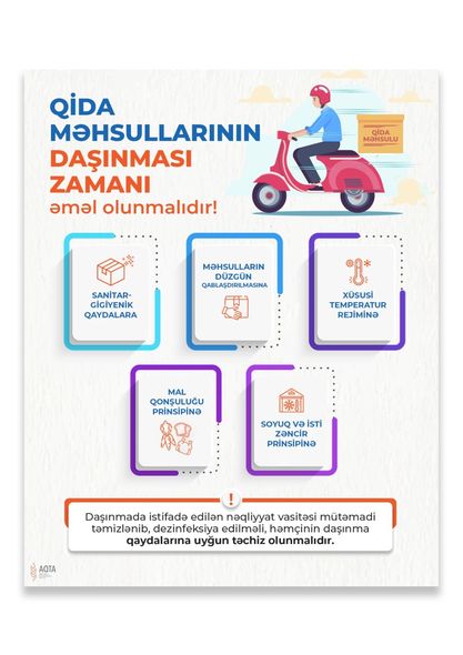 Bu barədə Azərbaycan Respublikası Qida Təhlükəsizliyi Agentliyinin müvafiq qərarı ilə təsdiq olunan “Qida məhsulları üzrə gigiyena tələblərinə dair Qaydalar”a 2 nömrəli əlavədə (“Qida obyektlərinə dair gigiyena tələbləri”) bildirilir. Sənədə əsasən, qida məhsullarının daşınmasında yalnız həmin məqsədlər üçün təchiz olunmuş xüsusi nəqliyyat vasitələrindən istifadə edilir. Daşınma əməliyyatları istehlakçılar üçün qida məhsullarının keyfiyyətinin və təhlükəsizliyinin qorunmasını tam təmin edən şəraitdə aparılmalıdır.