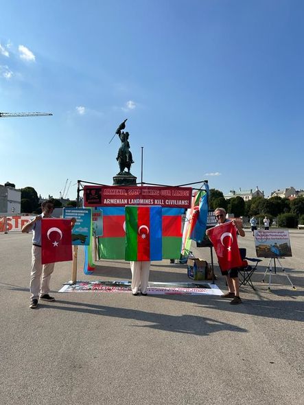 Aksiya ilə maraqlanan vyanalılara Ermənistanın hərbi və ekoloji cinayətləri barədə ətraflı məlumat verilib. Azərbaycan ərazilərində basdırılmış minaların insan həyatını təhdid etdiyi, 2020-ci il müharibəsindən bəri Azərbaycanda mina qurbanlarının sayının 303 nəfərə çatdığı, rəsmi İrəvanın dəqiq mina xəritələri verməkdən imtinasının insan hüquqlarını kobudcasına pozduğu, erməni KİV-inin azərbaycanlılara qarşı pis rəftarla bağlı pərakəndə sübutlar yaymasının III Cenevrə Konvensiyasına zidd olduğu, bir neçə azərbaycanlı əsgərin girov götürülərkən fiziki, mənəvi işgəncələrə və təhqirlərə məruz qaldığı, Azərbaycanın Qarabağ bölgəsində qızıl və mis-molibden yataqlarının qeyri-qanuni istismar edildiyi, 60 min hektardan çox meşə sahəsinin darmadağın edildiyi, çaylarımızın çirkləndirildiyi və sair faktlar nəzərə çatdırılıb.