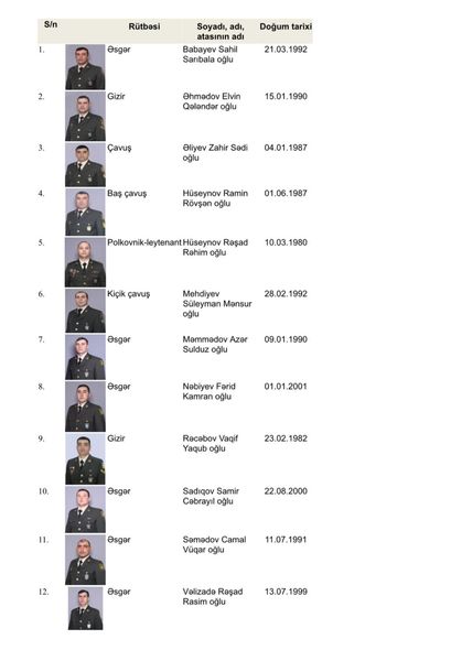 DİN-in şəhidləri barədə məlumatları təqdim edirik:
