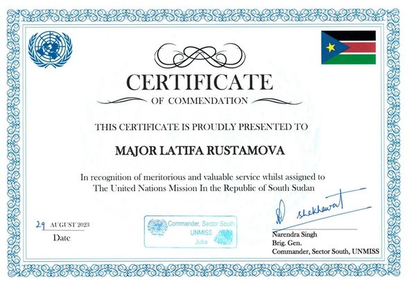 “Cənubi Sudanda BMT missiyasında göstərdiyi nümunəvi hərbi xidmətə görə həm BMT medalı, həm də tərifnamə ilə təltif edilmiş ilk qadın sülhməramlı mayor Lətifə Rüstəmova ilə biz ikiqat fəxr edirik”, – daimi nümayəndəlik qeyd edib.