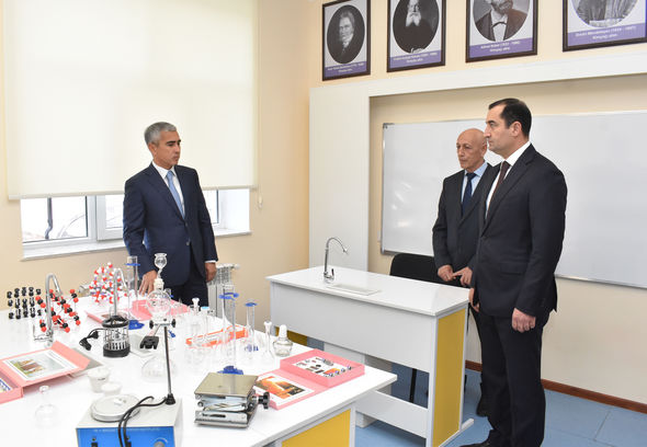 Azərbaycan Prezidentinin köməkçisi, Heydər Əliyev Fondunun icraçı direktoru Anar Ələkbərov, Şamaxı Rayon İcra Hakimiyyətinin başçısı Tahir Məmmədov və Dağlıq Şirvan Regional Təhsil İdarəsinin müdiri Rövşən Əliyev məktəbdə yaradılan şəraitlə tanış olublar.