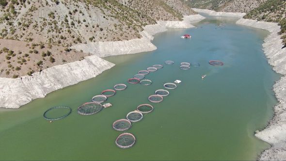 Türkiyənin Kastamonu vilayətinin Taşköprü rayonunda qəfəs torlarının yırtılması nəticəsində minlərlə balıq su bəndinə tökülüb.