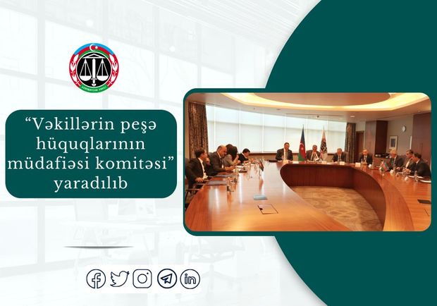 Nəzərə çatdırılıb ki, “Vəkillərin peşə hüquqlarının müdafiəsi komitəsi” peşə fəaliyyətlərini həyat keçirilməsi ilə bağlı vəkillərin hüquqlarının müdafiəsinə dair tədbirlər görəcək, müraciətləri araşdıracaq, təklif və tövsiyyələr hazırlayacaq.