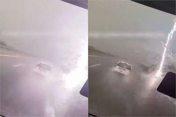 Türkiyədə yolda hərəkət edən nəqliyyat vasitələrinin yanında ildırımın çaxma anı kameralara düşüb. Kadrları Kastamonuda magistral yolla hərəkət edən avtobusun sərnişini çəkib. O, əslində, yağan güclü yağışı qeydə almaq istəyib. Ancaq bu an avtobusun cəmi bir neçə metrliyinə ildırım düşüb.