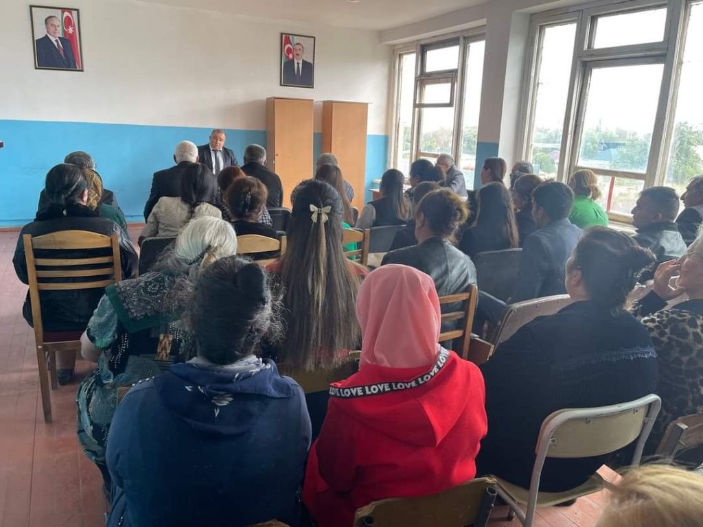 RİH başçısı Azər Qocayev səyyar görüşdə sakinlərə öncə Azərbaycan Respublikasının Prezidenti cənab İlham Əliyev tərəfindən aparılan uğurlu daxili və xarici siyasətdən, xalqımızın tarixinə “Zəfər salnaməsi” kimi yazılan 44 günlük müharibədə qazandığımız Şanlı Qələbədən, həmçinin düşmənə ağ bayraq qaldırtdıraraq qondarama dövlət qurumlarının ləğvinə, ərazi bütövlüyümüzün tam bərpasına səbəb olan lokal antiterror əməliyyatından, eləcədə əhalinin sosial müdafiəsinə və rifah halının yüksəldilməsinə yönəlmiş dövlət proqramlarından söz açmışdır.
