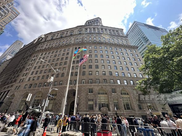 Üçrəngli bayrağımız Azərbaycan Dövlət Himninin sədaları altında Nyu-York səmasına qaldırılıb. Ölkəmizin bayrağı ABŞ bayrağı ilə birlikdə səmada dalğalanıb.