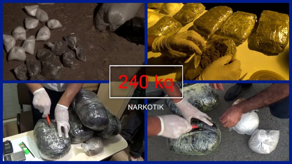 Əməliyyatlar zamanı qanunsuz dövriyyədən “qara” bazarda dəyəri 5 milyon manat olan ümumilikdə 240 kiloqram, o cümlədən 91 kiloqram heroin, 78 kiloqram tərkibi psixotrop maddələrlə zənginləşdirilən marixuana, 40 kiloqram metamfetamin, 31 kiloqram tiryək, həşiş qətranı, kokain, eləcə də digər növdən olan narkotiklər, 4560 ədəd psixotrop tərkibli metadon, lirika, preqabalin həbləri, 162 ədəd kultivasiya yolu ilə yetişdirilən, habelə 4635 ədəd yabanı halda bitən çətənə kolu, 1 ədəd odlu silah, çoxlu sayda elektron tərəzilər və narkotiklərin onlayn satışı zamanı istifadə edilən bank kartları çıxarılıb.